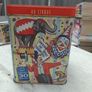 Neilson Crispy Crunch at the Circus Candy Tin. Used but in good condition. 5.5 inches in height. Hinged Top.