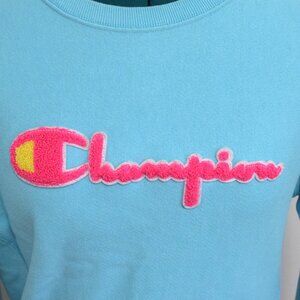 Vintage Neon Blue Needlepoint Champion Crewneck Sweater