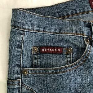 Unique vintage Nevada denim jeans in size 7/8. Little bit of flare to them at the end of pants' legs. Fashionable style.