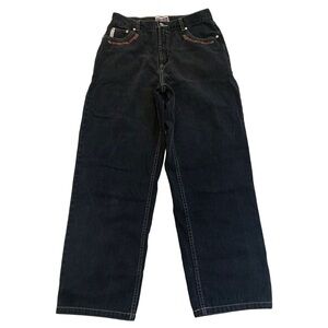 Vintage, Y2K, 90s, 2000s, Wide Leg, Baggy Jeans, Skater, Sears, Nevada Jeans, Dark Wash, Embroidered, High Rise, Streetwear, Retro, Denim, Cotton, Grunge, Oversized.