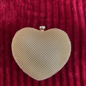 Vintage New Evening Metallic Gold Heart Shape Handbag