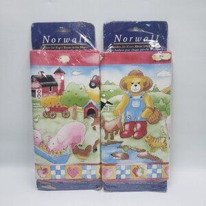 Two packages of Vintage Norwall Wallpaper Borders Pre-pasted Featuring Teddy Bear Farmer Sheep Pigs and Other Animals
