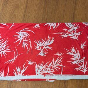 Vintage lightweight jersey knit fabric from the 1980s featuring orangy red background with white palm print. New old stock, excellent unused condition.