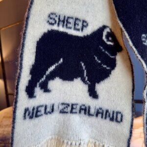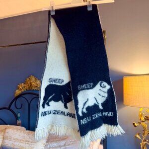 Vintage New Zealand 100% Wool Black and White Sheep Scarf