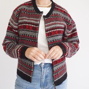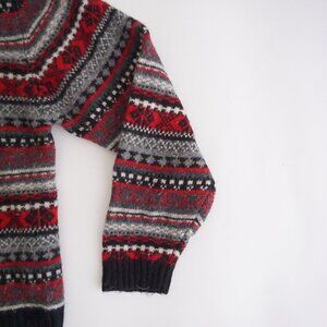 Vintage Newton Trading Red Black Knit 100% Shetland Wool Zip Cardigan Sweater L