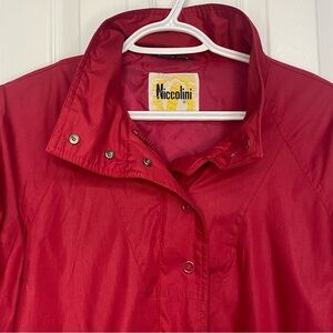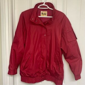 Tons of snap closures, front zip. Arm pockets on one side only. Ribbed elasticized waist and cuffs.