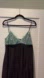 absolutely gorgeous made in the USA dress in new condition. hidden side zip. lace appliqué at the chest. 92% silk, 8% spandex. lovely drip pleat detailing. fully lined.