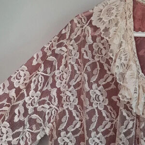 Vintage Night Gown Women's Medium Open Tie Front Lace Robe Maxi Length Dress