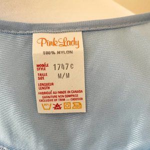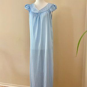 Vintage Nightgown Blue Nylon with Ruffled Cap Sleeves Medium