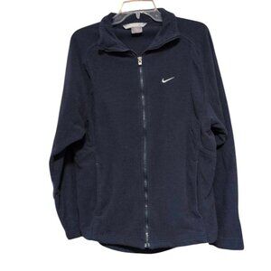 Vintage Nike Fleece Jacket full zip up Navy Blue With Pockets Has Logo on Chest