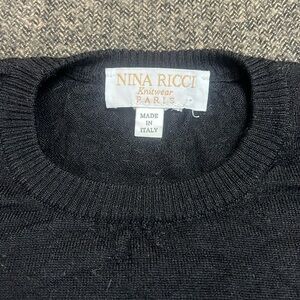 Vintage Nina Ricci 100% Merino Wool Italy Made Black Crew Neck Sweater est sz M