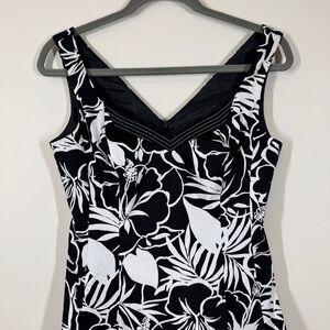 Vintage Nine West Y2K Floral Black White Floral Print Mini Dress Size 6