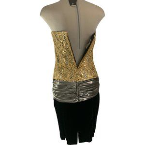 Vintage Nipon Night Black and Lace gold Sequin Strapless Dress Size 6