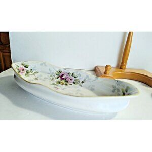 Vintage Nippon Japan Hand Painted Flowered Celery Serving Dish 9" x 4"