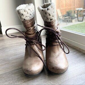 Vintage No Pulse Knit Cuff Lace Up Leather Boots