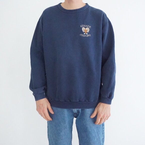 Vintage Non-Fiction Navy Collegiate Sweatshirt Embroidered Kenner Graphic Medium
