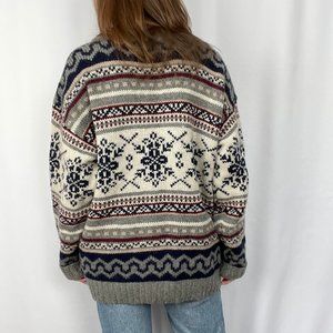 Vintage Nordic Fair Isle Wool Oversized Knit Crew Neck Grandpa Fisherman Sweater