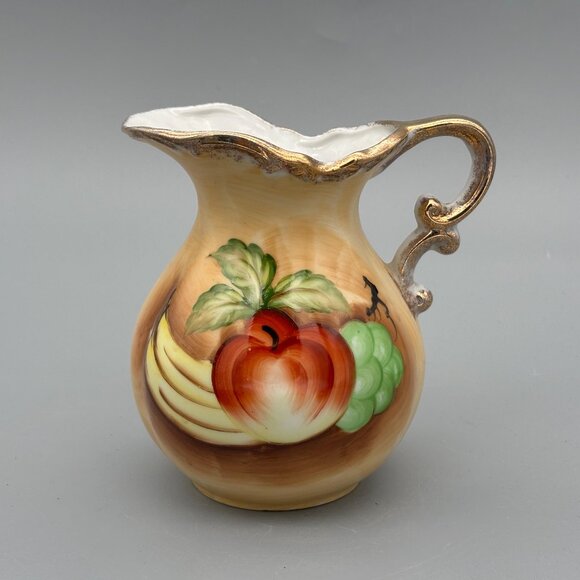 Vintage Norleans Japan Porcelain Pitcher Hand-Painted Fruit Design Gold Trim