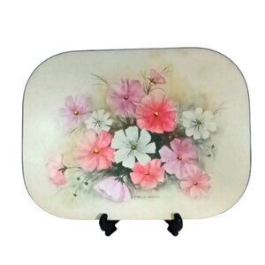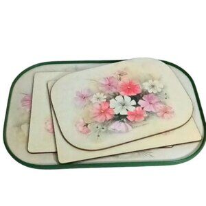 Vintage Norma Wiles South Africa Tray & Cork Backed Mats Cosmos Flowers Set of 4