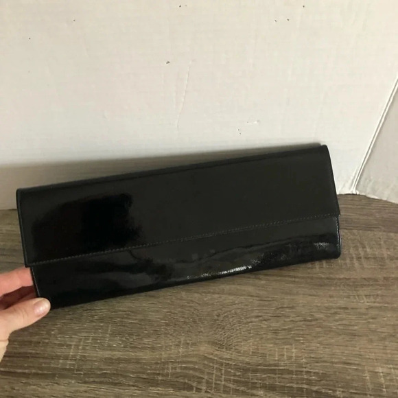 Lovely oversized clutch made by Normandie, made in Canada. Black shiny finish. Truly a statement clutch.