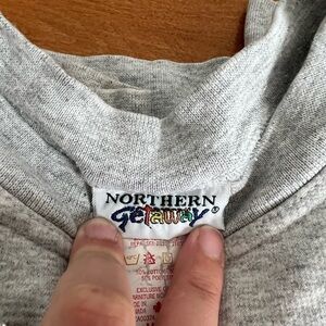 Vintage Northern Getaway crewneck. Made in Canada. Very nostalgic! Cute figure skating graphic on the front, with a bit of sparkle! Heather grey colour. Long sleeves. Nice and cozy!