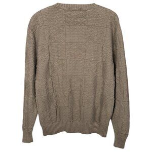 vintage golf sweater men, retro 90s golf pullover, textured tan knitwear, golf grandpa style top, embroidered golf knit, muted color sweater, cotton vintage sweater, plaid bag golf design, mens medium retro fit, preppy vintage knitwear, soft breathable cotton top, 90s tan golf pullover, unisex golf club sweater, hong kong vintage knit, neutral color cozy sweater