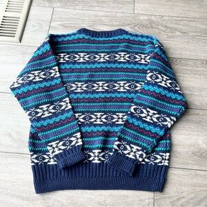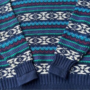 Vintage Northern Isles Blue Fair Isle Crew Neck Sweater Made in Hong Kong