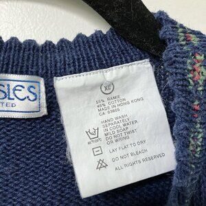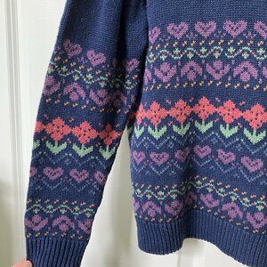 Vintage Northern Isles Sweater Womens Fair Isle Spring Bird Floral Granny Knit