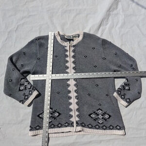 Vintage Northern Reflections Knit Zip Up Sweater Grey White Black Woman's Small