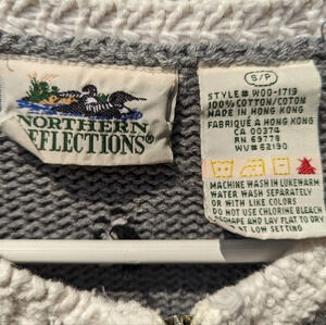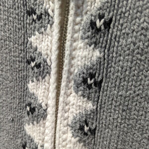 Vintage Northern Reflections Knit Cardigan Zip Up Sweater Grey White Black Small