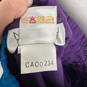 Vintage Northern Spirit Neon Blue Windbreaker Jogger Pants in Size Medium. Shell is nylon. Lined with poly and cotton. Made in Taiwan. Elastic waist. Machine washable. Front pockets. Drawstring waist. Great pre-owned condition. Please review all photos.