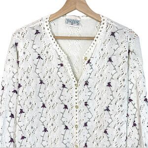 Vintage Northern Traditions Pointelle Knit Floral Embroidered Cardigan