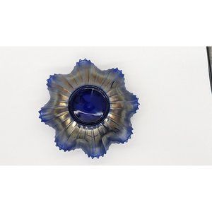 Vintage Northwood Peacocks on Fence Electric Blue Bowl Ruffle Sawtooth
