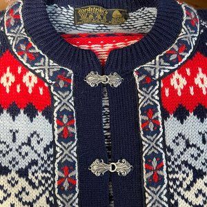 Vintage Norwegian Fair Isle Wool Knit Embroidered Oversized Cardigan Sweater