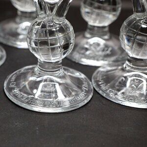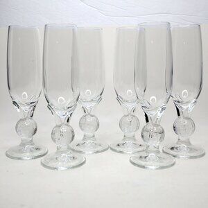 Own a fascinating piece of Y2K history with this striking set of 6 vintage Nouvo champagne flute glasses! These distinctive glasses were produced to commemorate the Millennium and the year 2000, featuring a unique, sculptural globe or sphere built into the stem.