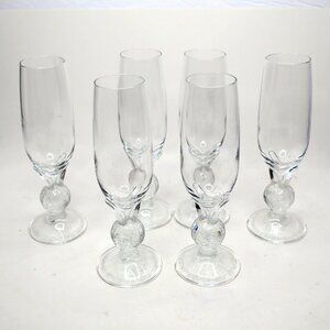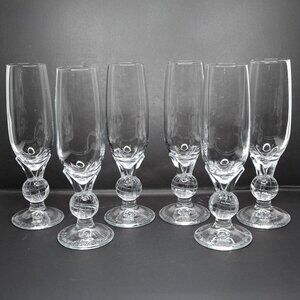 Vintage Nouvo Champagne Flute Glasses Set of 6 - Millennium 2000 Globe Stem Y2K Clear Crystal Toasting Goblets