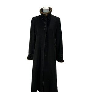 Vintage Novelti Wool Blend Coat with Faux Fur Trim Black