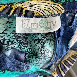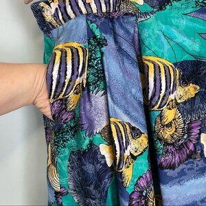 Vintage Novelty Fish Skirt Sz L Blue Yellow Teacher Fun Theme Ocean Liz Moody