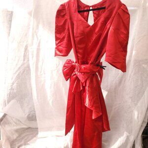 Vintage Nu-Mode Red Satin Puff Sleeve Dress