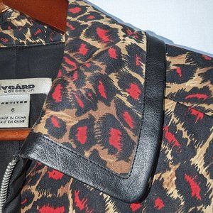Vintage Nygard Petites animal-print blazer with leather trim size 6 EUC