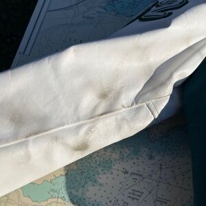 Vintage OBC varsity / letterman jacket. Dark green wool blend with white leather sleeve (sleeves show wear). Embroidered 'Marilyn' with number 92 on sleeve. Jacket is made by Canada Sportswear Co, tag is coming loose. Tagged as a size medium, fits a bit large. Measures 20" across shoulders, 21.5" pit to pit, 26" long.