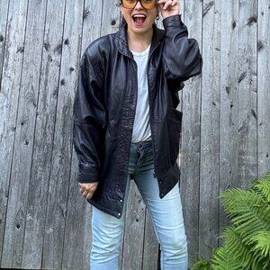 Vintage OSCAR LEOPOLD 80's Dark Purple Women's Leather Jacket - Size S