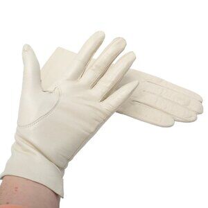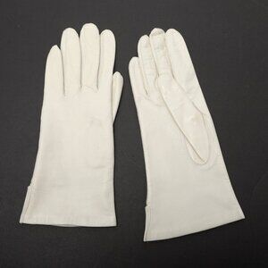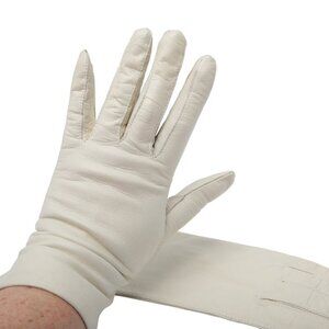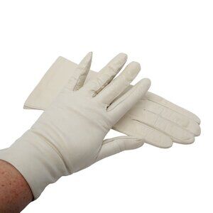 Vintage Off White Leather Gloves Lined Retro Opera Party Posh Classic Sz S/M