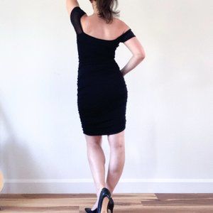 Vintage Off-the-shoulder Black Midi Evening Dress Little Black Dress LBD
