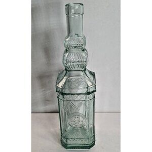 Vintage square style green glass decanter/apothecary bottle from spain.