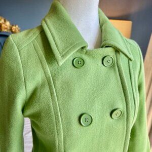 Vintage (2004) Old Navy light green short peacoat, size XS. In excellent vintage condition. Double breasted, flap pockets at hips. 71% wool 29% nylon. Bust measures 17.5 inches laying flat, waist measures 16.5 inches flat, length from shoulder to hem is 21 inches. Cat friendly, nonsmoking home.