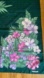 Elegant silk scarf with vibrant floral design. Features shades of pink, purple, and green.