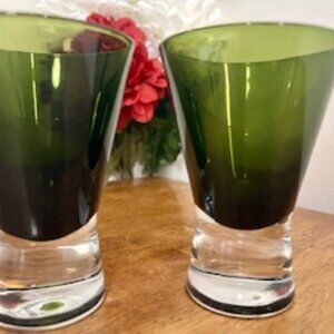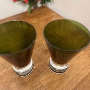 Vintage Olive Green Flared Cocktail Glasses – Set of 2 – 6 oz Mid-Century Barwar