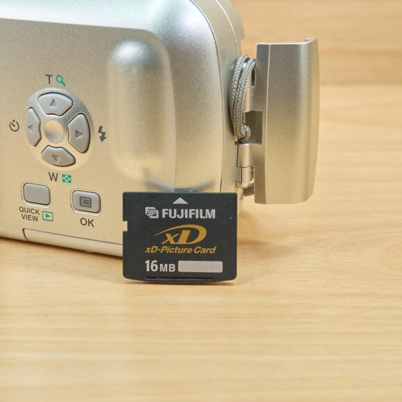 Comes with xD Picture memory card 16MB and USB cable for transfer images.