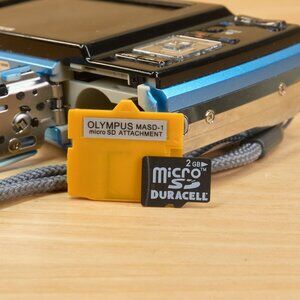 Comes with a battery, and adapter xD Memory card withmicro SD 2GB.